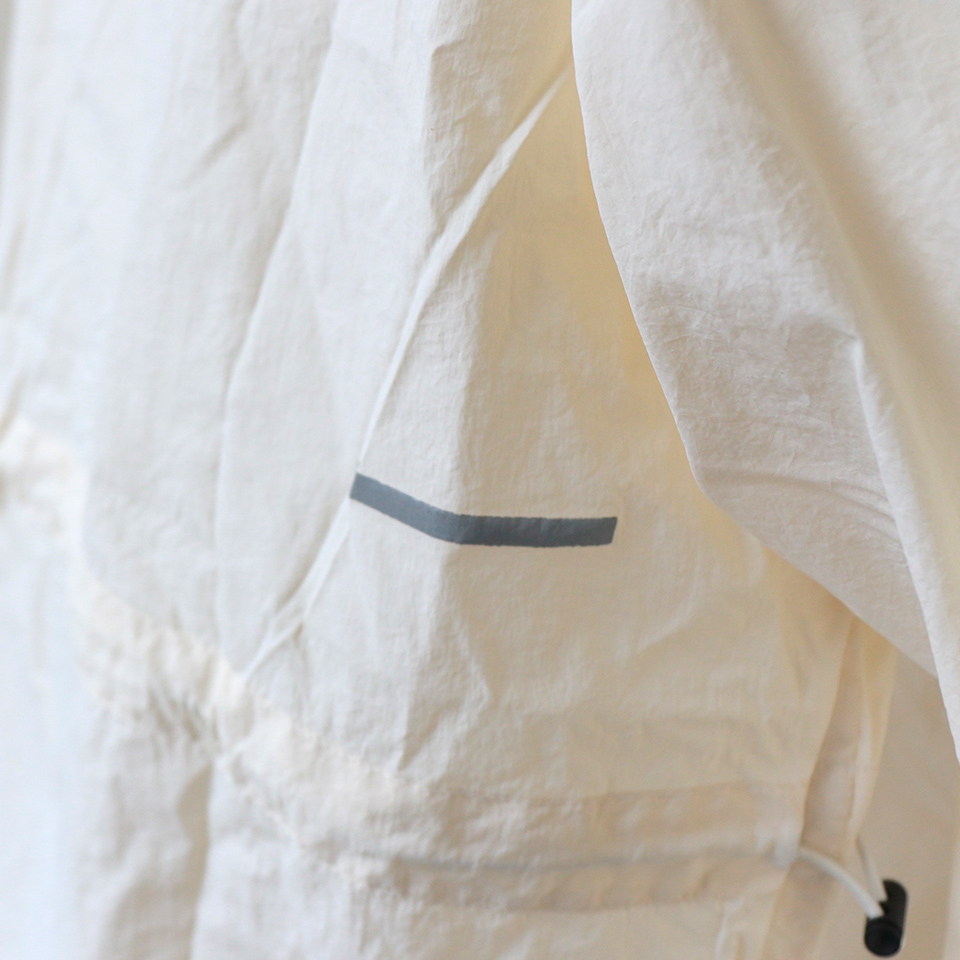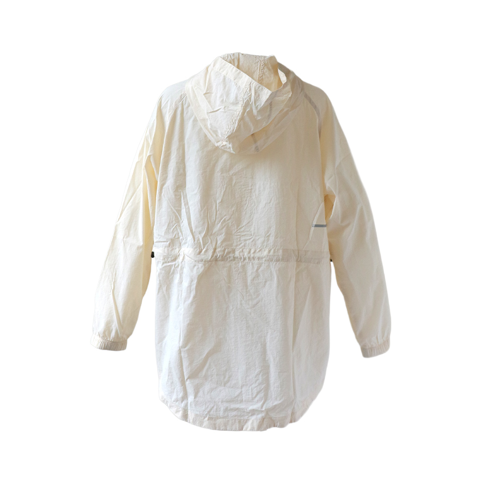 透け感のあるナイロンリップ素材で見た目も着心地も”エアリー”。UV対策・撥水加工・軽量設計に加え、夜間も安心な再帰反射仕様でウォーキングがもっと快適に。