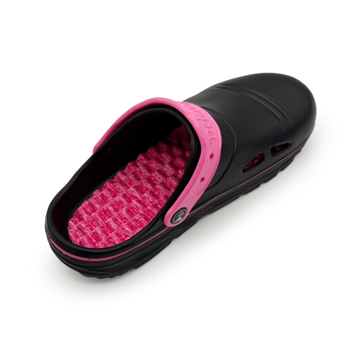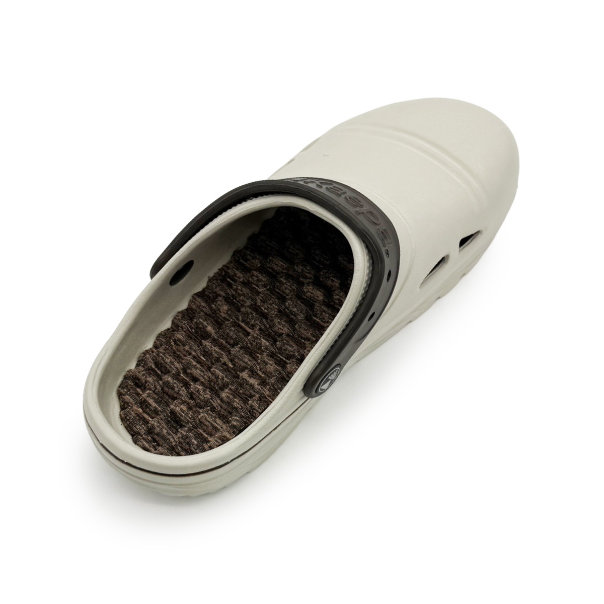 疲れにくいクッションインソールのタウンサンダル、ワンマイルのお出かけに。軽く弾力性があり履き心地抜群! ストラップがついているので脱げにくく、前に倒せばスリッパ感覚での着用も。気軽に脱ぎ履きできる2WAY仕様です。フットベットクッションの凹凸が足裏に当たり、程よい刺激で履き心地◎
